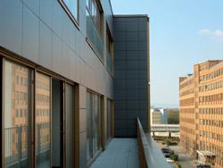 Unwahrscheinlich in diesen Zeiten, aber wahr - da stehen in Frankfurt 1,5 Millionen m2 Büroflächen leer und doch schafft es die Immobiliengruppe Frankfurt, ihren Bürohaus-Neubau im Frankfurter Westen schon mit Fertigstellung vollständig zu belegen. Die Gruppe baute das City West Plaza von Beginn auf eigenes Geld und Risiko. Mitte Mai 2004 hat sie das Gebäude übergeben, am 1. Juli wird es bezogen. Dann werden rund 180 Mitarbeiter der Bahnversicherungsanstalt den architektonisch auffälligen Neubau in der Galvanistraße mit Leben füllen. Hinter dem Erfolg der Immobiliengruppe Frankfurt steckt Beharrlichkeit und - allen Unkenrufen zum Trotz - der Glaube an das eigene Konzept. "Wir haben uns nicht auf Makler verlassen", erzählt der Marketing-Leiter der Immobiliengruppe Hans-Jörg Vetter, "diese wollten angesichts der Krise im Büro-Immobilien-Markt über einen möglichst niedrigen Preis vermieten. Wir aber wollten das Spiel nicht mitmachen und haben auf unsere eigene Kraft und auf den Faktor Qualität gesetzt." Offensichtlich mit Erfolg. Die Immobiliengruppe Frankfurt startete eine Großflächenkampagne und schon nach drei Monaten war ein Interessent gefunden: kein Investmentfond, sondern ein Eigennutzer, der auf Qualität Wert legt, die Bahnversicherungsanstalt. Noch während das City West Plaza im Rohbau stand, sind sich der Investor und die Versicherungsanstalt einig geworden. Es passte einfach. Zum einen die Lage in einem lebendigen Business/Life-Umfeld nahe der Messe, über den West-Bahnhof und die nahe Autobahn gut zu erreichen. Zum anderen die Architektur des City West Plaza. Die Fassade vereinigt sachliche Modernität mit historischem Ziegelstein-Flair. Außerdem hat sie "Rhythmus". Statt phantasielos untereinander, sind die Fenster versetzt angeordnet, das strahlt Dynamik aus, ohne unruhig zu wirken.