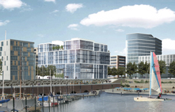Attraktive und effiziente Flächen sowie ausreichend Stellplätze – eingefasst in eine extrovertierte Architektur, die durch den Hafen das transparente Fassadenkonzept und die auf verschiedenen Ebenen angelegten Terrassen besonders erlebbar macht. Zusätz- lich liefern wir Mehrwerte wie beispielsweise die äußerst repräsentative Lobby im Erdgeschoss.“