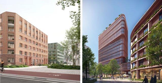 Baufeld B. Fotocredit: gruppeomp / studiomauer | meravis Immobiliengruppe. • Baufeld C (rechts). Fotocredit: KSP Engel | meravis Immobiliengruppe