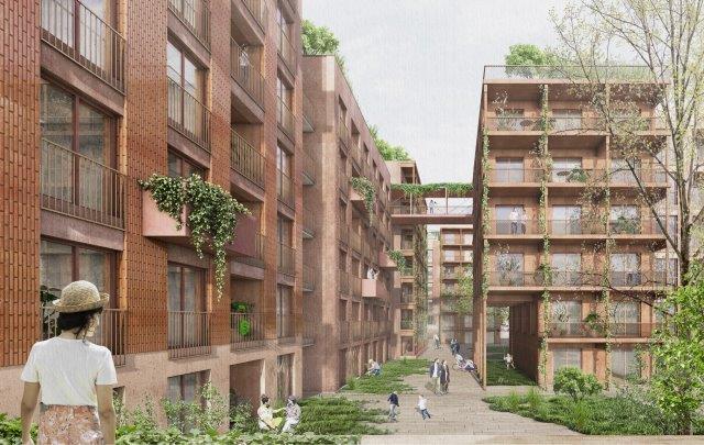 „Wir haben uns die Umsetzung von zukunftsorientierten und lebenswerten Wohnkonzepten auf die Fahne geschrieben. Nur so können wir einen Beitrag zur Entstehung von innovativen Stadtquartieren leisten und langfristig attraktiven Wohnraum schaffen. Daher war es uns besonders wichtig, dass der Siegesentwurf auch in den Punkten ‚Qualität des Wohnens und der Nutzungsverteilung‘ sowie bei den wichtigen Themen ‚Nachhaltigkeit‘ und ‚Stadtklimatische Verträglichkeit‘ überzeugt“, ergänzt Christmann. So sieht der Entwurf beispielsweise großzügige Grünflächen sowie eine vielfältige, ebenfalls begrünte Dachlandschaft vor, die sowohl wichtige Aufenthaltsflächen für die Bewohnerinnen und Bewohner schaffen, als auch einen bedeutenden Beitrag zur Unterstützung des lokalen Mikroklimas leisten. Auch die Nutzung von Photovoltaik-Anlagen auf den Dächern ist vorgesehen.