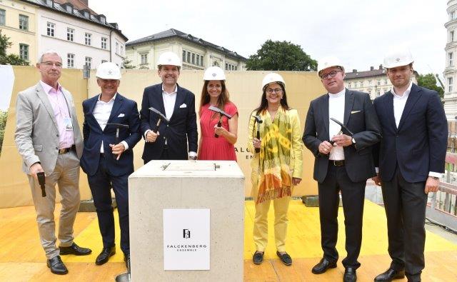 24 Meter tief buddeln sich die Bagger im Auftrag des familiengeführten Immobilienunternehmens WÖHR + BAUER seit dem Spatenstich im Juli 2023 in Münchens Altstadt. Am 17. Juli 2024 haben Stadtbaurätin Prof. Dr. (Univ. Florenz) Elisabeth Merk, Kommunalreferentin Kristina Frank, Stadtrat Alexander Reissl in Vertretung des Oberbürgermeisters und die beiden WÖHR + BAUER-Geschäftsführer Wolfgang Roeck und Oliver Vogt feierlich den Grundstein für das Falckenberg Ensemble gelegt. Ein traditionsreicher Brauch, der ein wichtiges Kapitel aufschlägt. Gesegnet wurde die Grundsteinlegung von Dr. Andreas Batlogg SJ von den Jesuiten des St. Michael in München. Nach Abschluss der Tiefbauarbeiten geht es nur noch in eine Richtung: nach oben.