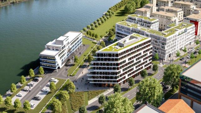 „Heimatufer“ wurde von dem bekannten Berliner Büro „Eike Becker_Architekten“ entwickelt, das sich auf individuelle architektonische Lösungen spezialisiert hat und für jedes Projekt ein interdisziplinäres Team von Spezialisten zusammenstellt. So entsteht in Ludwigshafen ein hochwertiges Quartier mit einem Gebäude-Ensemble, das sich um einen Gartenhof gruppiert und zum Rhein hin öffnet. Heraus sticht das Solitärgebäude „Beaufort“ mit seiner markanten Architektur. Es weckt mit seiner Form und Fassade Assoziationen an ein Schiff und die fließenden Bewegungen des Flusses. Alle Wohnungen haben eines gemein: die Blickbeziehungen zum Wasser, die dem Projekt eine seltene Exklusivität geben.