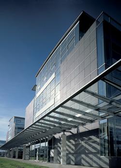 Nur wenige Minuten vom Münchner Flughafen entfernt steht in Hallbergmoos das Büroensemble Isar Büro Park, das von der DB Real Estate Investment GmbH, Eschborn, für den Offenen Immobilienfonds "grundbesitz-invest³ entwickelt wurde. Für diese Projektentwicklung hatte sie einen internationalen Architekturwettbewerb ausgelobt. Das Ziel war ein völlig neuer Typ Büropark. Die Arbeit des japanischen Architekten und Preisträgers Fumihiko Maki aus Tokio erfüllte alle Anforderungen auf ideale Weise. Sein Entwurf überzeugte durch neue gestalterische Ideen, geniale Zweckmäßigkeit und einen ästhetischen Gesamteindruck. Maki erhielt den Auftrag für das Büropark-Projekt in Hallbergmoos. Transparenz, visuelle und räumliche Zusammenhänge bei hoher Funktionalität, eingebettet in eine auf das Architekturkonzept ausgerichtete Parklandschaft, zeichnen dieses Konzept aus, das als Maßstab für den Büropark des 21. Jahrhunderts dienen kann. Aus der Formensprache des talentierten Architekten wurde der Isar Büro Park entwickelt. Das Ensemble setzt sich aus elf Einzelgebäuden zusammen. Die Fassaden erhalten ihre besondere Wirkung durch eine Kombination aus Glas, Aluminium und Granit in Grau- und Silbertönen. Zurückhaltende Eleganz und Perfektion im Detail begeistern auch im Inneren der Gebäude, die durch die harmonische Gestaltung Ruhe ausstrahlen. Hier lässt es sich entspannt und mit Freude arbeiten.