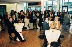 Schließlich waren dem Event bereits zwei Messetage mit After-EXPO-Partys vorausgegangen. An den Bistrotischen wurden lebhaft Informationen ausgetauscht. Und Chansonnier Pierre Ferdinand und seine zehnköpfige Combo sorgten mit einem Mix aus Chanson und Pop für einen stimmigen Sound bei diesem Event zu Ehren des MesseCampus Riem. Fazit: Ein Bürokomplex der besonderen Art feierte seine Fertigstellung auf diese ganz spezielle Weise.