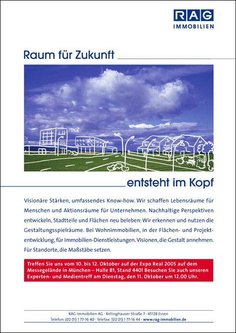 | Infos: | RAG Immobilien AG Rellinghauser Straße 7 45128 Essen Telefon: (02 01) 1 77-16 40 Telefax: (02 01) 1 77-16 44 www.rag-immobilien.de |