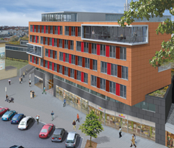 „Wichtigster Frequenzbringer, wie es im Fachjargon heißt, ist die Post, die seit Jahrzehnten an diesem Standort ansässig ist“, sagt Lothar Schubert, Bereichsleiter bei der ZÜBLIN Development GmbH, einem Zusammenschluss der Projektentwicklungstätigkeiten der STRABAG Projektentwicklung und der ZÜBLIN Projektentwicklung. Sie hat bereits ihre neue ca. 900 m² große Filiale und ihren Zustellstützpunkt des „Yellow Office“ bezogen, während über ihr noch kräftig gebaut wird. Büroflächen mit ca. 4.000 m² stehen im „Yellow Office“ ab Jahresende zur Verfügung, im „Green Office“ am Lehmweg werden Mietflächen ab ca. 150 m² neuen Mietinteressenten zur Verfügung stehen. Das Mietzinsgefüge beginnt bei 13 Ä je m² und Monat.