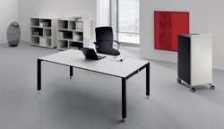 Die klaren Linien der Beimöbel setzen sich bei den TriASS Systemschreibtischen fort, deren Konstruktion auf dem Plattformgedanken mit patentierter Verbindungstechnik basiert. Abgerundet wird das TriASS Schreibtischsystem durch Besprechungstische und Teamarbeitsplätze. Alle Schreibtischvarianten lassen sich durch Adaptionen, wie zum Beispiel Drucker- oder PC-Halter, Elektrifizierungskomponenten etc. funktional weiter aufrüsten.