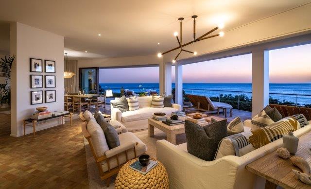 Die mediterrane Residenz ist eine zweistöckige Villa mit rotem Dach und verfügt insgesamt über ca. 7.450 Quadratfuß (rund 690 Quadratmeter). Mit einem schicken, luftigen Grundriss ist das Erdgeschoss komplett aus einem großen Raum designt, der das Wohnzimmer, den Essbereich und die Gourmetküche kombiniert. Vom Boden bis zur Decke reichende Glasschiebetüren zeigen den Blick auf das Meer, den Strand und die Küste und öffnen sich auf die umlaufende Terrasse mit Feuerstelle. Die Grand Master Suite umfasst einen Kamin und eine Sitzecke sowie zwei Spa-ähnliche Badezimmer und einen begehbaren Kleiderschrank. Die anderen Schlafzimmer verfügen auch jeweils über ein eigenes Bad, wobei ein Schlafzimmer einen eigenen Eingang, ein Bad und eine Küche hat. Ein Fitnessraum mit gewölbten Decken und ein Medienraum vervollständigen die Villa.