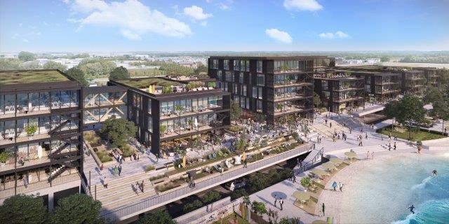 Bei der Umsetzung der geplanten Büroflächen baut die Rock Capital Group auf ihre Erfahrungen, die sie während der Corona-Pandemie gesammelt hat. „Büros müssen in Zukunft so konzipiert sein, dass Mitarbeiter freiwillig ins Office wollen. Damit Menschen ihre Potenziale entfalten können, ist ein Nebeneinander aus Kommunikation und Rückzugsmöglichkeiten wichtig“, sagt Christian Lealahabumrung, ebenfalls geschäftsführender Gesellschafter bei der Rock Capital Group. Der Entwurf von HENN Architekten, die sich beim Architekturwettbewerb durchgesetzt haben, stellt die größte Besonderheit des Objekts in den Fokus: das Wasser. Viel Glas eröffnet den Blick von Innen nach Außen. Überall laden Flächen zum Verweilen, Nachdenken und Plaudern ein.
