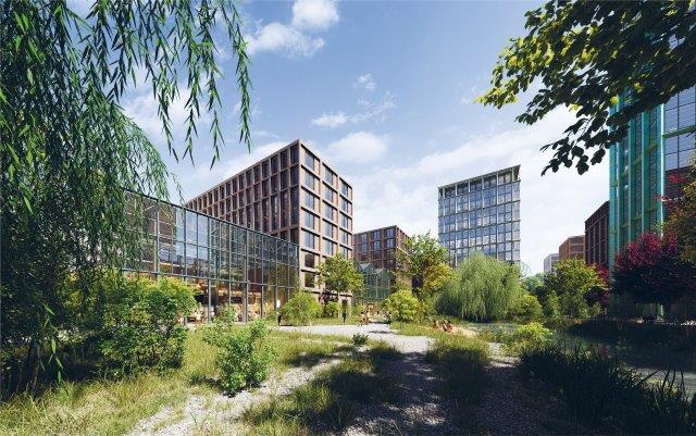 Insgesamt sieht der Entwurf knapp 235.000 m2 BGF vor, davon rund 31.000 m2 im Erdgeschoss. Der Entwurf überbaut mit einer GRZ von 0,49 knapp weniger als die Hälfte des Grundstücks. Der vorliegende Siegerentwurf bildet nun die Grundlage für die Festsetzung des Bebauungsplanes, der für 2025 / 26 angestrebt wird. Mit einer Fertigstellung des Quartieres in seinen städtebaulichen Grundzügen kann bis 2030 gerechnet werden.
