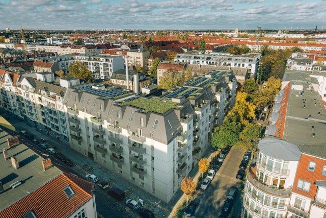 Die Gebäude werden im Effizienzhaus-40-Standard errichtet. Für das Vorderhaus ist eine DGNB-Gold-Zertifizierung vorgesehen; die entsprechenden Nachhaltigkeitsanforderungen werden bei beiden Gebäuden umgesetzt. Die Wärmeversorgung erfolgt fossilfrei über Luft-Wärmepumpen, ergänzt durch Photovoltaikanlagen, Gründächer und ein Regenwassermanagementsystem.