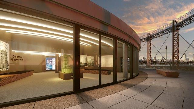 Ab einer Höhe von 16 Metern entsteht auf rund 28.000 Quadratmetern Fläche ein Bürogebäude. Von hier aus wird ab 2024 die Deutsche Bahn die Zukunft der Mobilität mitgestalten. Der Gasometer wird damit vom Gas-Tank zum Think-Tank. Die historische Stahlstruktur von 1910 wird unter Einsatz von Sandstrahltechnik denkmalgerecht saniert und bleibt erhalten. Aus Respekt vor dem Industriedenkmal wird der gläserne Neubau dem einst auf- und abfahrenden Gasbehälter nachempfunden. Das historische Stahlgerüst dient dabei als Rahmen für den runden Neubau. Die größtenteils gläserne Fassade wird eine hohe Lichtdurchlässigkeit des Gebäudes sicherstellen. Im historischen Stahlmantel des Gasometers sowie in den oberen Etagen entsteht zudem eine multifunktionale Eventfläche mit Amphitheater und Skylounge, deren Dachterrasse einen einzigartigen Blick über Berlin bietet und auch für die Öffentlichkeit zugänglich sein wird.