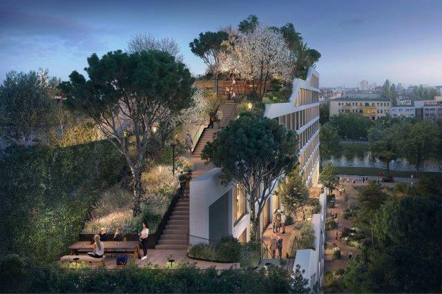 Bauwens neues Bürogebäude AERA auf der Berliner Mierendorff-Insel an der Spree ist mit seiner gestuften Terrassierung und den 5,40 Meter hohen Panoramaverglasungen schon architektonisch ein sehr ungewöhnliches Office-Projekt. Nun setzt Bauwens dem innovativen Bau zudem eine weithin sichtbare grüne Krone auf: Seit heute bepflanzt das Landschaftsarchitekturbüro capattistaubach in einem ebenso komplexen wie beispielgebenden Verfahren den 2.200 Quadratmeter großen Dachgarten von AERA mit 30 bis zu 12 Meter hohen Bäumen und unterstreicht damit den visionären Anspruch des Projekts.