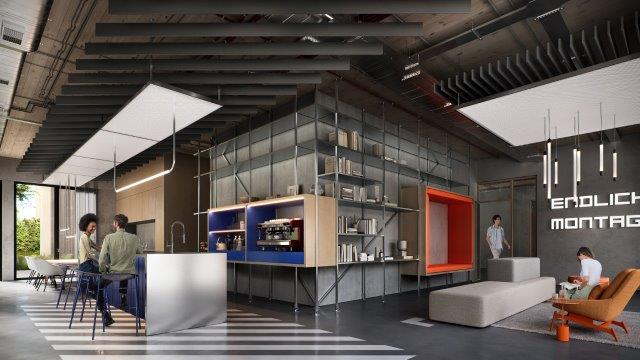 Die Büroflächen des Gebäudes sind als Multi-Space-Flächen geplant und können je nach Bedarf in Ein- und Zwei-Personenbüros sowie Besprechungsräume flexibel umgestaltet werden. Die vielen transparenten Flächen und teilweise zu öffnenden Elemente der Fassadengestaltung schaffen eine Verbindung zu der umliegenden Natur und vermitteln das Gefühl, mitten im Grünen zu arbeiten, ohne auf den Komfort eines innovativen Officegebäudes zu verzichten.
