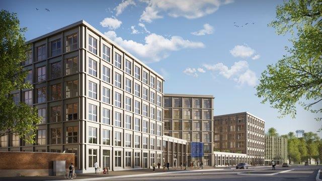 Der Baustoff Holz spielt bei den bereits vollständig an die Bundesanstalt für Immobilienaufgaben (BImA) vermieteten Flächen eine tragende Rolle. So werden die 6-geschossigen Gebäude bis auf die Sockel-bereiche und Kerne in einer Art modernen Fachwerkbauweise errichtet und einschließlich der Fassaden weitgehend vom Werk aus geliefert und an der Baustelle zusammengefügt. Dazu wurde ein innovatives Energiekonzept entwickelt, das die Gebäude weitestgehend mit regenerativer Energie aus Wasser und Sonne versorgt.