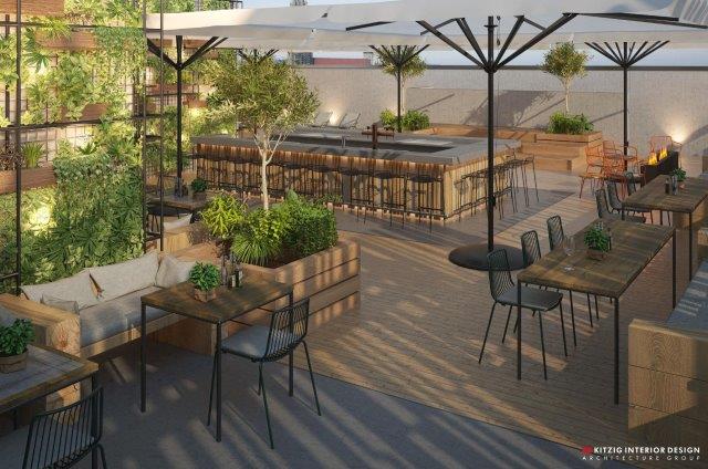 Highlight ist die Lounge in der achten Etage auf einer Gesamtfläche von rund 380 qm: Mit Rooftop-Bar, Dachterrasse, Chill-Out-Bereich, Co-Working Area und Boardroom wird sie zum Ulmer Wohnzimmer. Lounge-Ecken mit Feuerstellen auf der großzügig überdachten Terrasse bieten den idealen Platz für Sundowner mit Blick auf das Ulmer Münster. Local Heroes sorgen zukünftig für typisch regionale Snacks und Drinks, sowie ein umfangreiches und kostenfreies Eventprogramm mit DJ-Sets, Wohnzimmerkonzerten und vielem mehr für Hotelgäste und Ulmer Nachbarn.